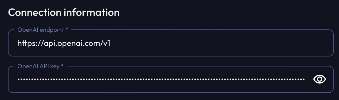 Leave the OpenAI endpoint to its default value and enter your OpenAI API key value.