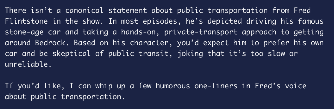 It doesn't seem that the LLM knows about Fred's personal thoughts on the matter.