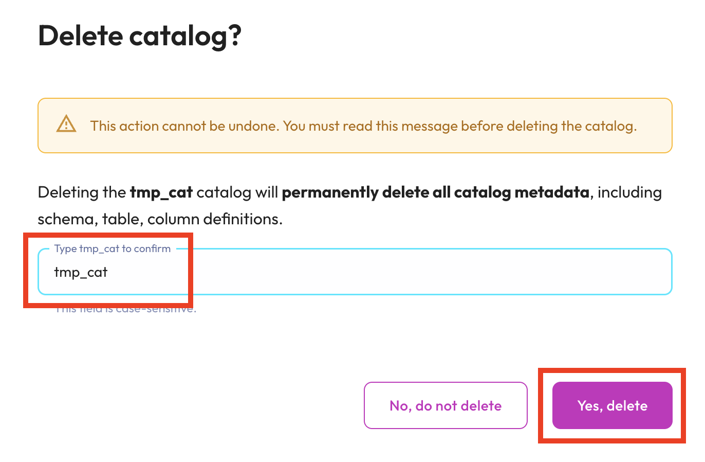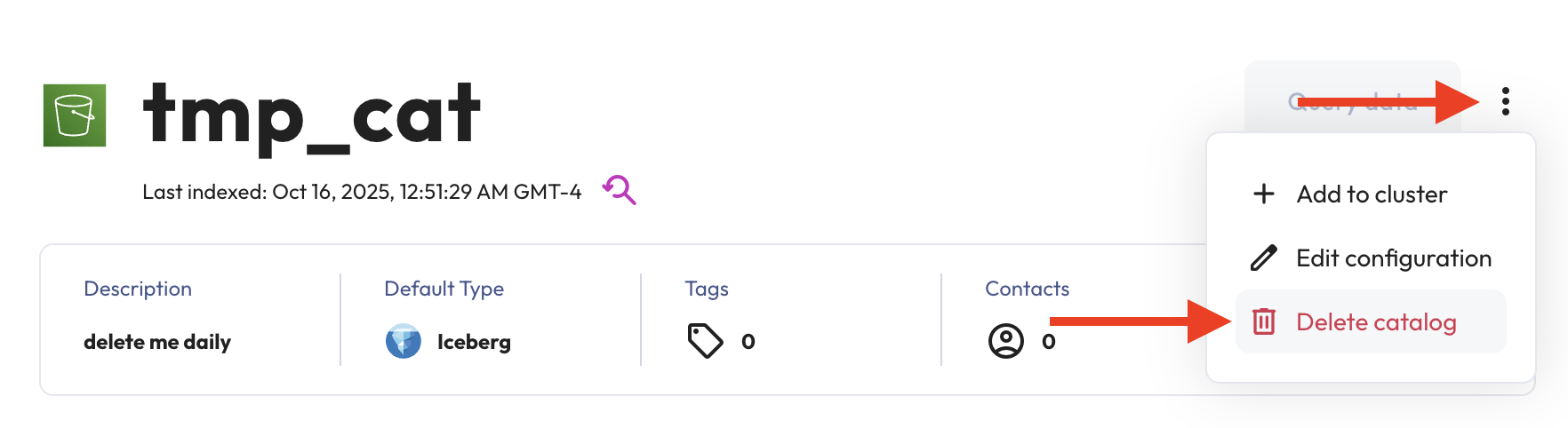 Click on the vertical ellipsis menu icon and choose Delete catalog.