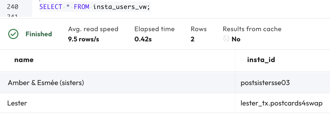 Querying the table shows the expected behavior.