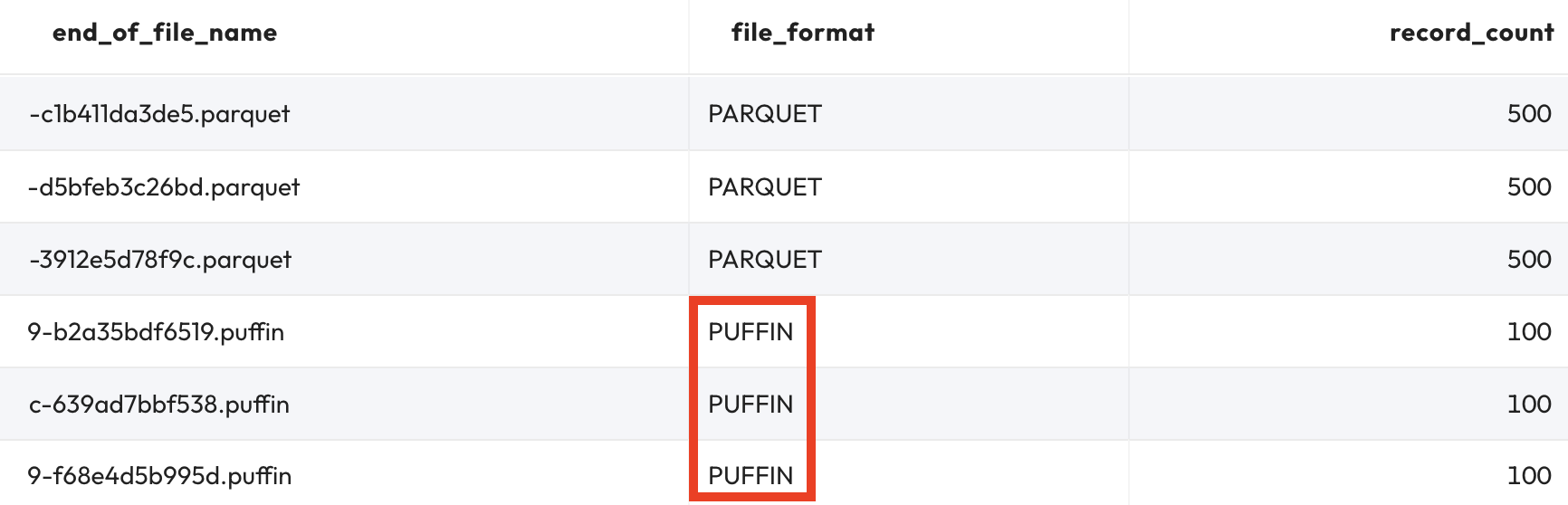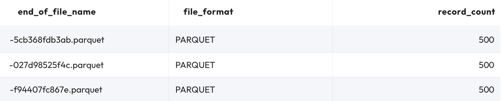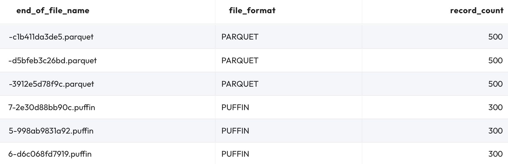 file_format, record_count