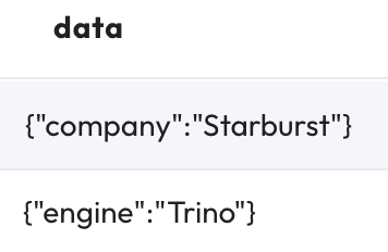JSON '{"company": "Starburst"}',