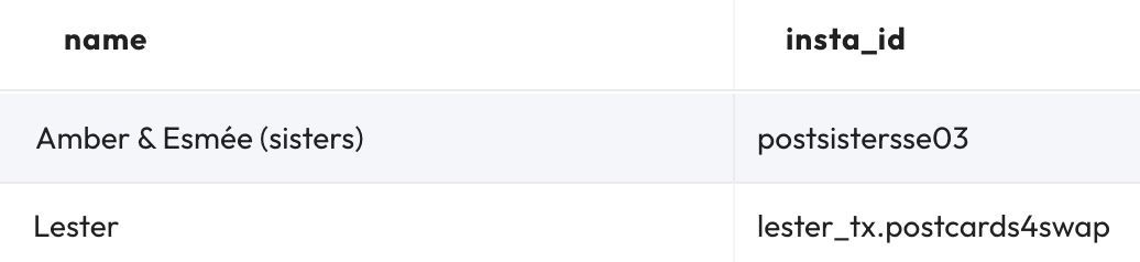 CREATE TABLE penpals