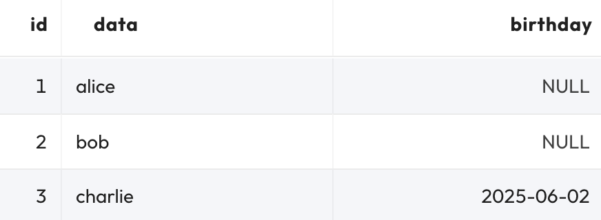 ADD COLUMN birthday DATE DEFAULT DATE '2025-06-02';