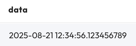 VALUES TIMESTAMP '2025-08-21 12:34:56.123456789';