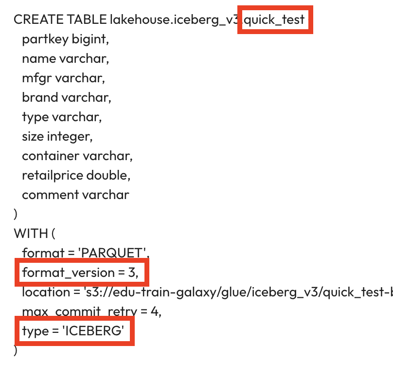 WITH (type='iceberg', format_version=3);