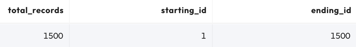 Notice that we will be focusing on 1500 rows of data that have surrogate key values ranging from 1 - 1500.