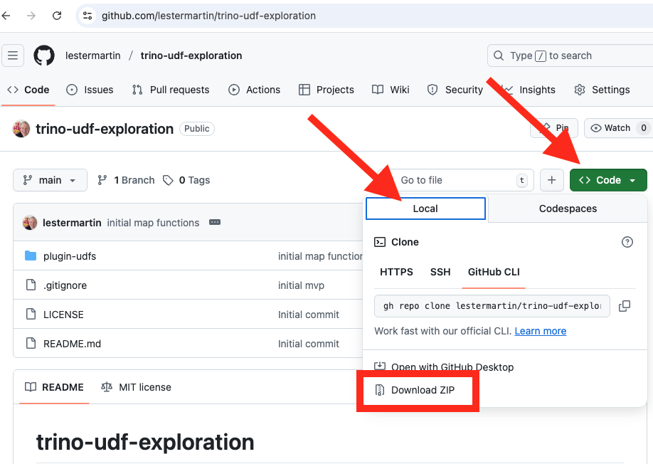 Using the git tooling of your choice, clone the https://github.com/lestermartin/trino-udf-exploration repository onto your workstation. Feel free to fork this repo to your own account first if you prefer.