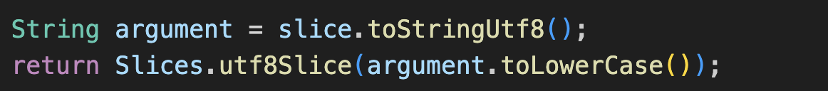 And the simple implementation is just forcing the passed in string to be all lower-case before being returned.